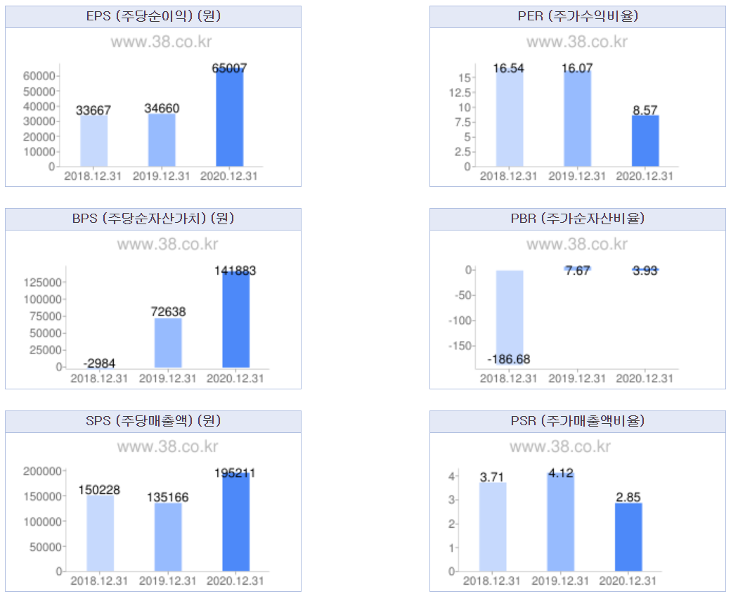 | EPS (주당순이익) | 65,007 원 | 34,660 원 | 33,667 원 |